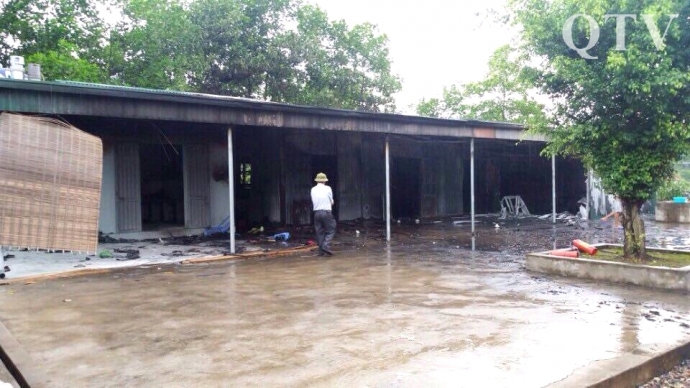 Ngay khi nhận được tin báo, lực lượng chữa cháy chuyên nghiệp thuộc Phòng Cảnh sát PCCC số 2 nhanh chóng có mặt tại hiện trường. Tuy nhiên lúc này, toàn bộ diện tích khoảng 100m2 không có thi công chống sét, cột thu lôi an toàn gồm: 2 phòng kho chứa đồ ăn lương thực khô, 1 phòng ngủ, 1 phòng ăn đã chìm trong ngọn lửa lớn; điện đã được ngắt; lực lượng tại chỗ đang triển khai phun nước từ 2 xe bồn chở nước để dập lửa.