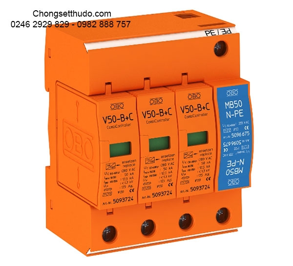 Chống Sét Lan Truyền OBO V50-B+C 3+NPE - Thiết bị chống sét 3 pha OBO V50-B+C 3+NPE - Imax=50kA - Type: OBO V50-B+C 3+NPE