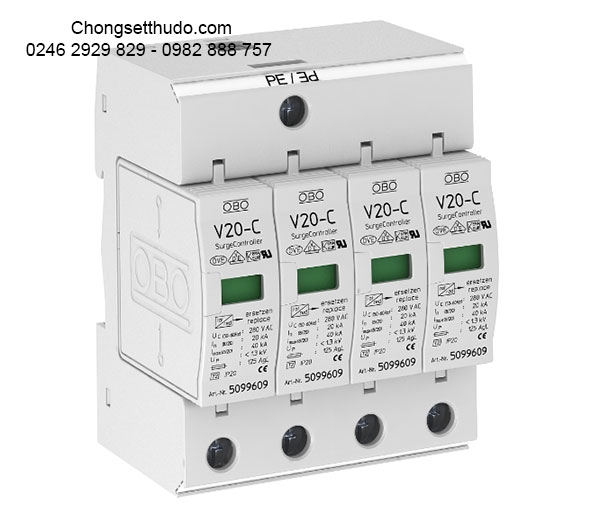 Chống Sét Lan Truyền 4P+E Imax = 40kA Type: V20-4-280. Chống sét dạng module.