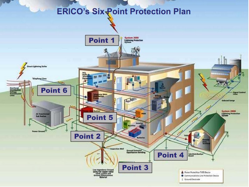 - Hệ thống tiếp đất: dùng để tản dòng điện sét trong đất. Cấu hình giống như các hệ thống tiếp đất trên.