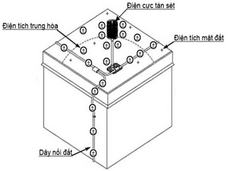 Cách làm chống sét cho nhà ở với hệ thống chống sét đánh thẳng bằng công nghệ tiêu tán đám mây điện tích không cho hình thành tia tiên đạo sét