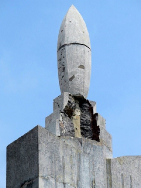 Sét đánh vỡ chóp tượng đài 25 tỷ đồng làm lộ nhiều khiếm khuyết của tượng đài 25 tỷ đồng.